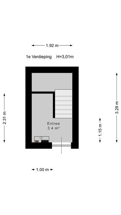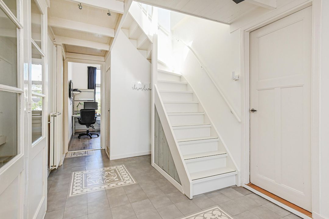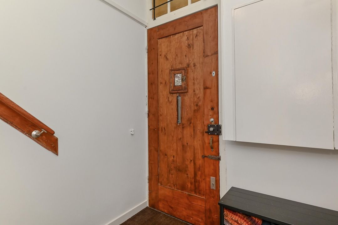 Entree in “Haagsch” open portiek op de 1e verdieping, ruim portaal met ruimte voor fietsen, kinderwagen en meterkast met zeer uitgebreide moderne elektrische installatie en groepenkast. Inpandige trap naar woonverdieping.