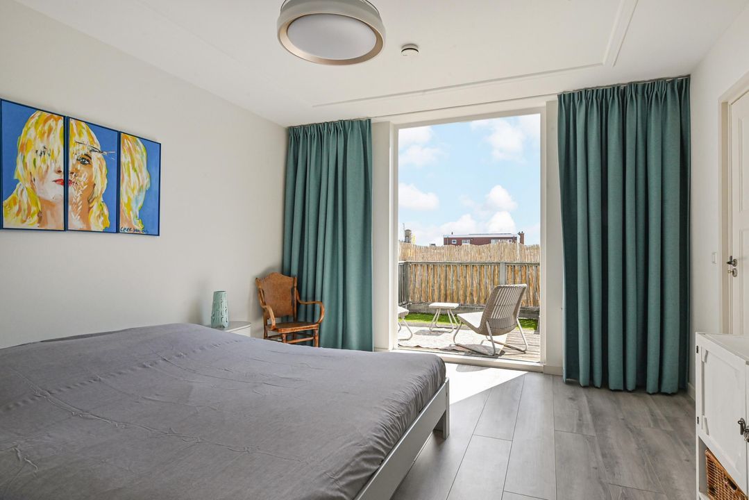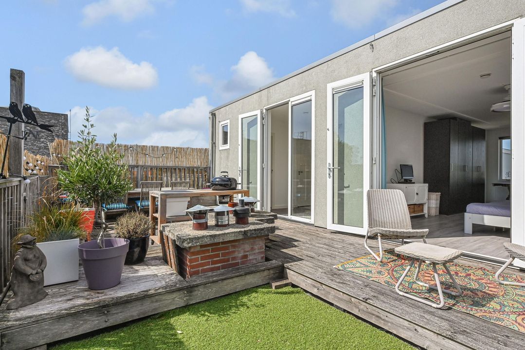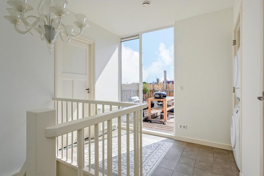 Vanuit de centrale hal, met daarin een vaste kast waarin de wasmachine- en drogeropstelling zijn verwerkt. Ook is er tevens toegang tot riant ca. 37 m2 groot zonnig dakterras alwaar gehele dag de zon!