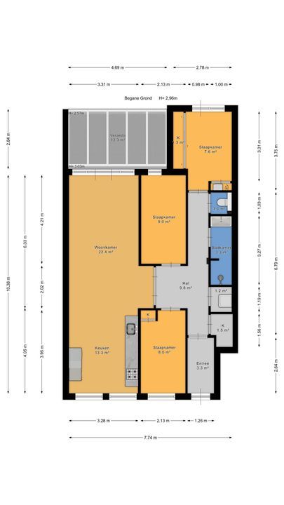 - Kijk voor de exacte maatvoering (NEN2580) naar de officiële meetstaat en plattegronden.