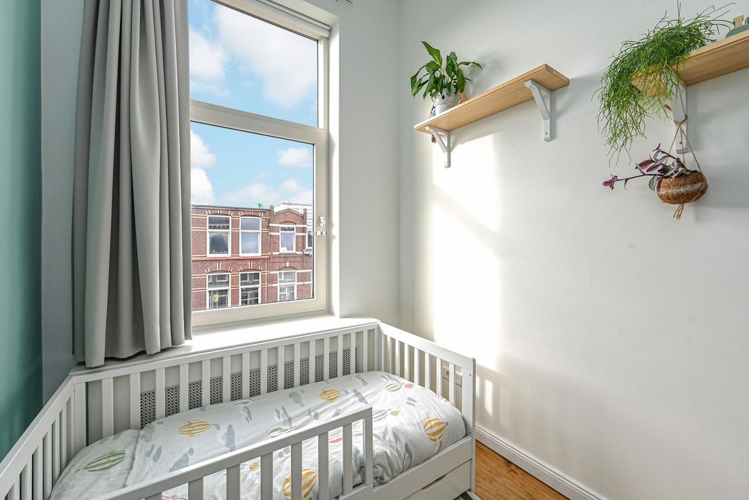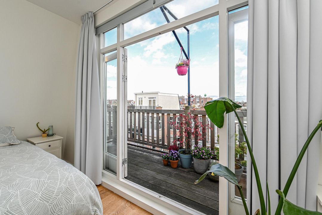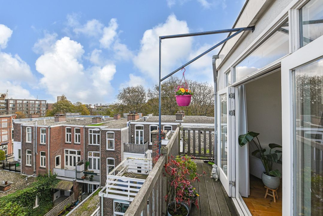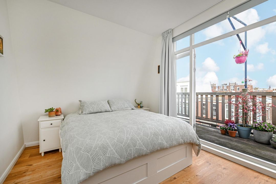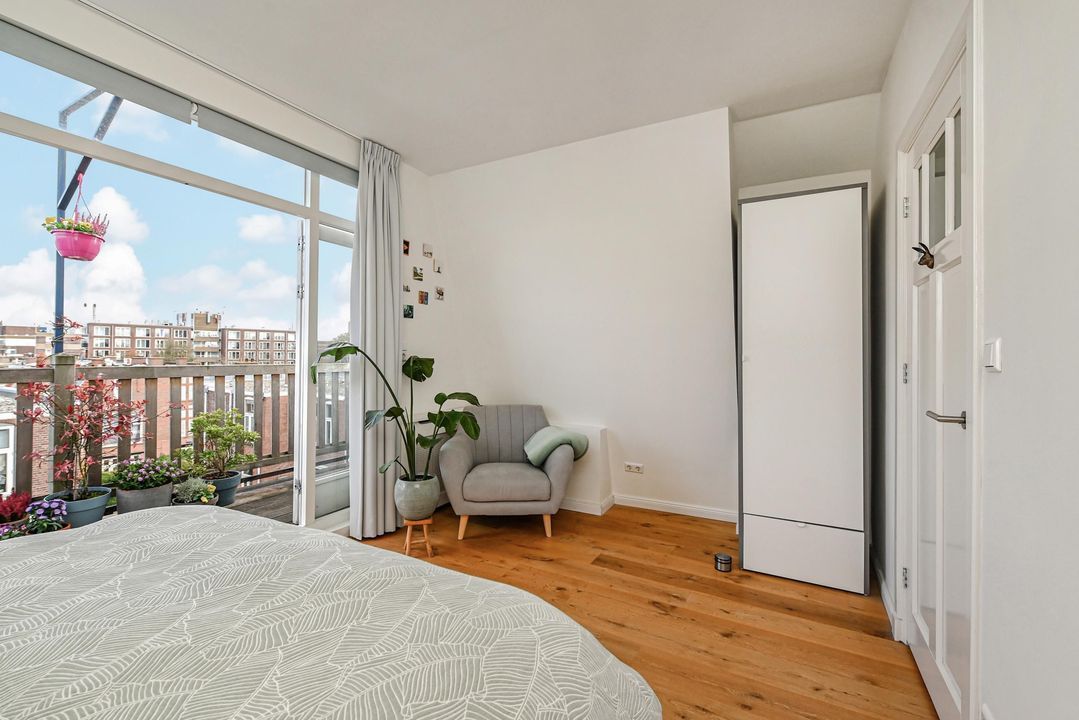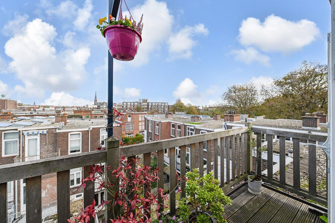 3e etage: twee grote slaapkamers en vanuit de Master bedroom middels openslaande deuren toegang tot een royaal balkon met een weids uitzicht over Den Haag (zelfs het torentje van het Vredespaleis is zichtbaar).