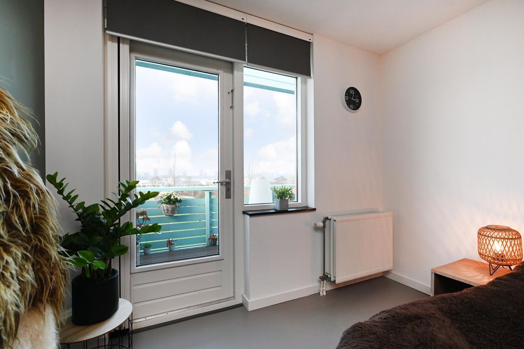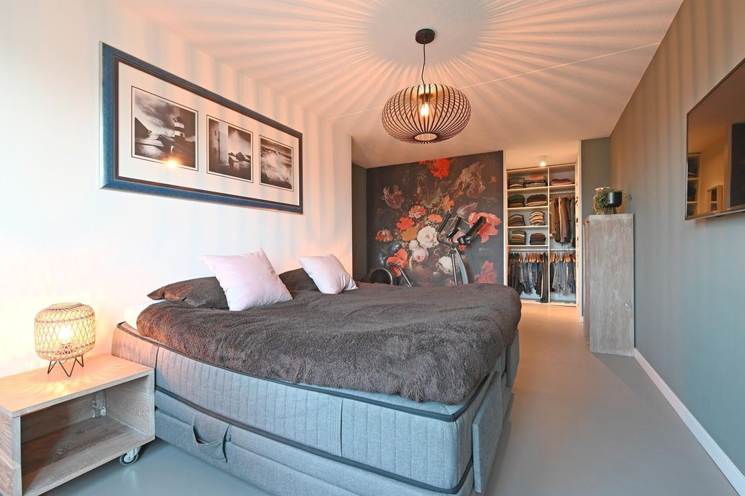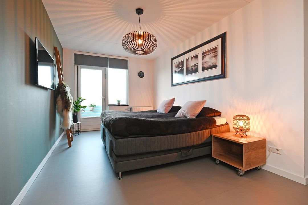 De zeer royale hoofdslaapkamer beschikt over een ruime inloopkast en een fraaie vloer en biedt eveneens toegang tot het zonnige terras op het zuidwesten. De tweede slaapkamer heeft eveneens een prettige maatvoering en grenst aan het terras, maar biedt vanuit deze kamer geen directe toegang.