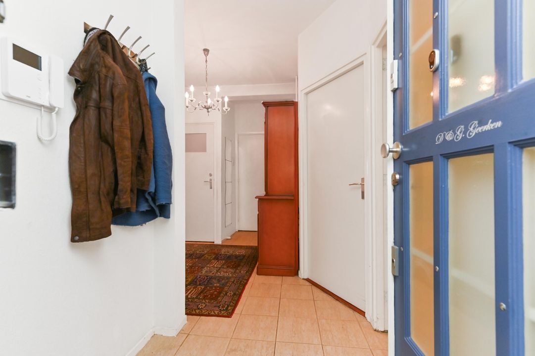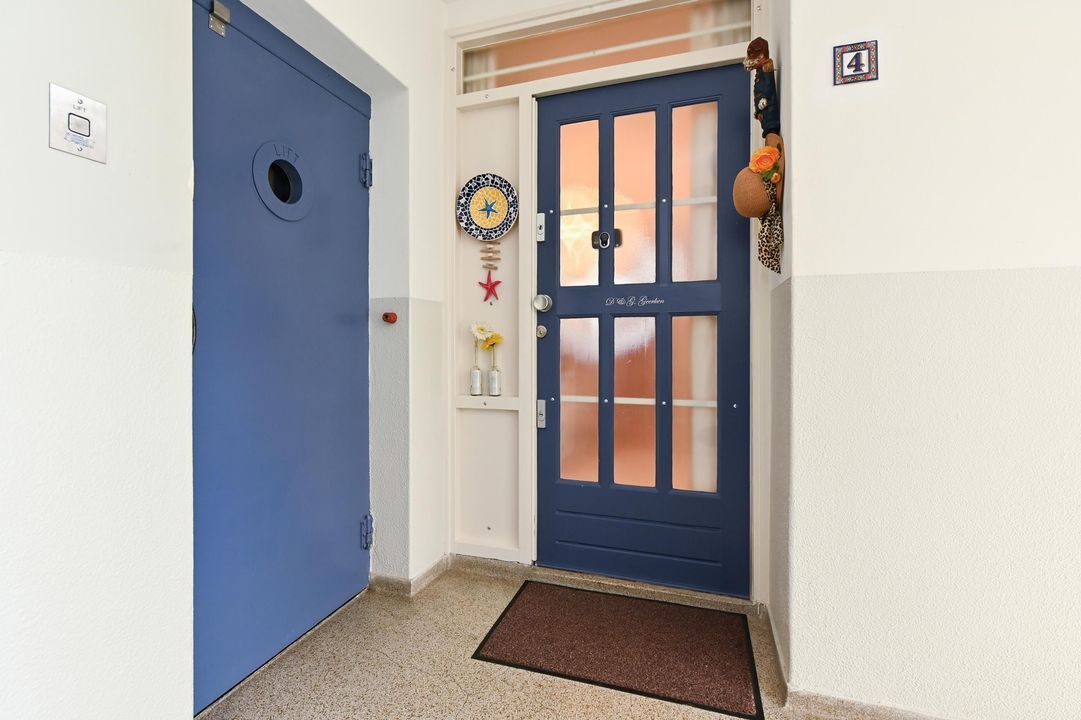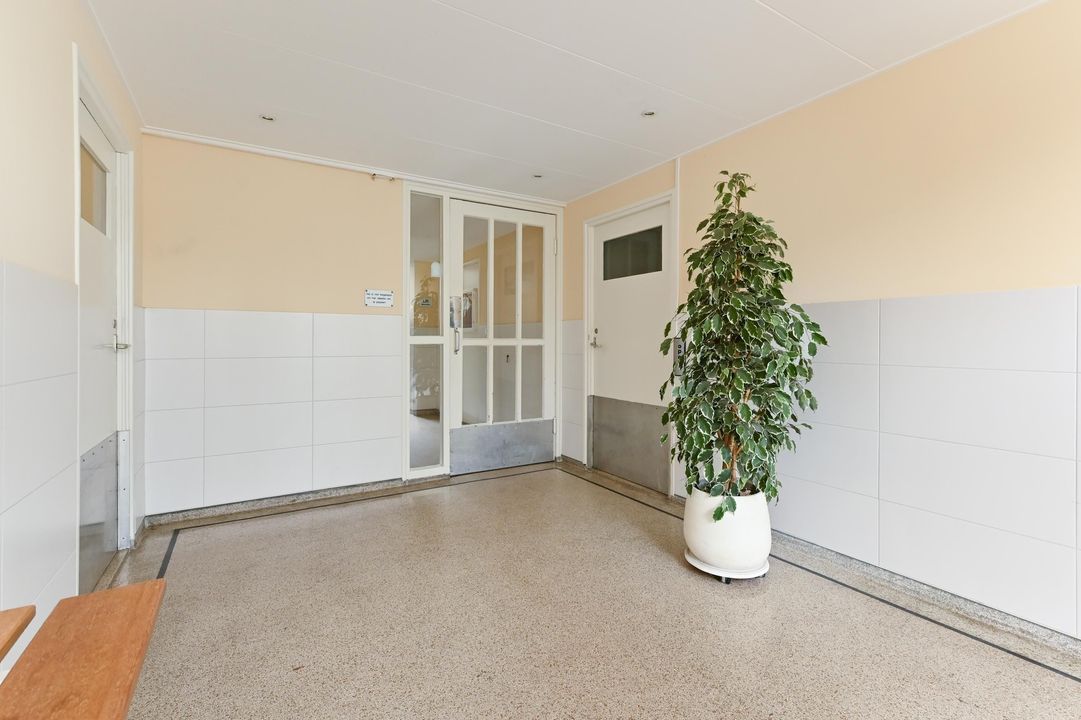 Indeling: gesloten entree met brievenbustableau en videofoon, centrale hal met lift en trappenhuis naar de hoger gelegen verdiepingen. Entree van het appartement op de 2e verdieping, ruime hal met diepe vast kast waar tevens de groepenkast voor de elektra aanwezig is (6 groepen + aardlekschakelaar).