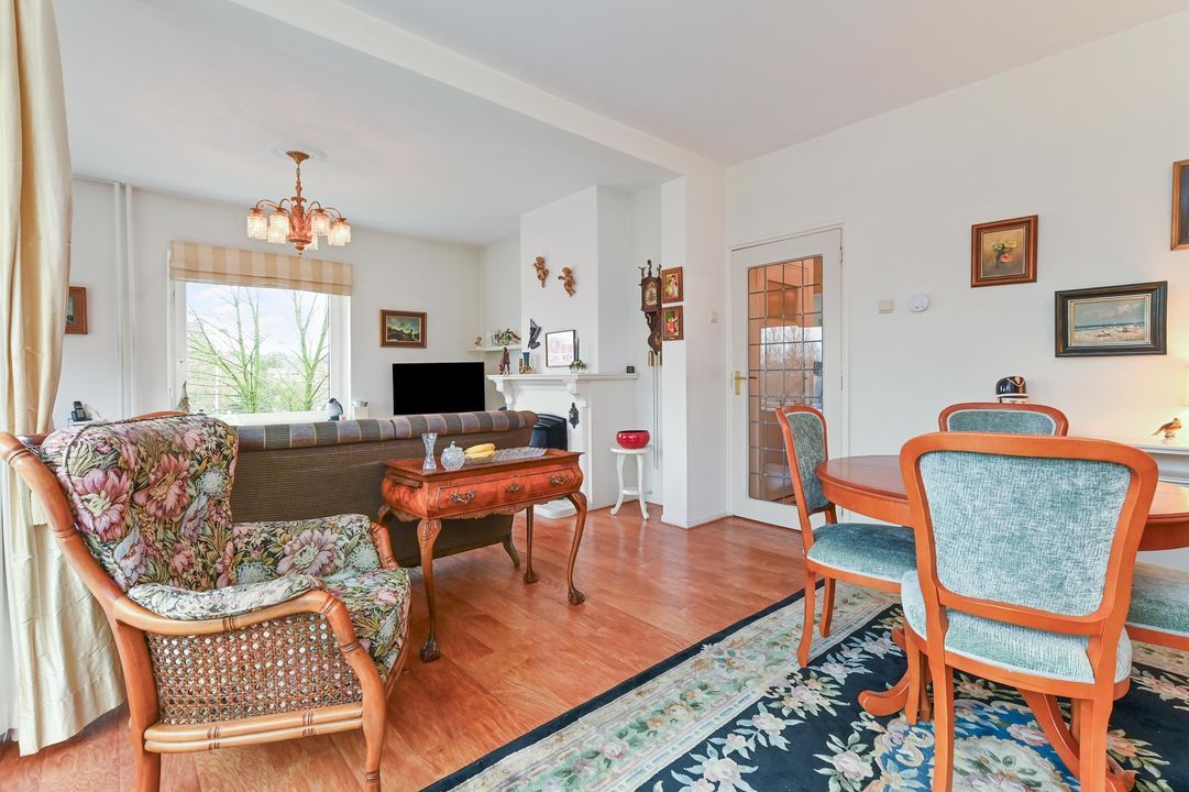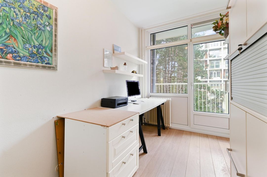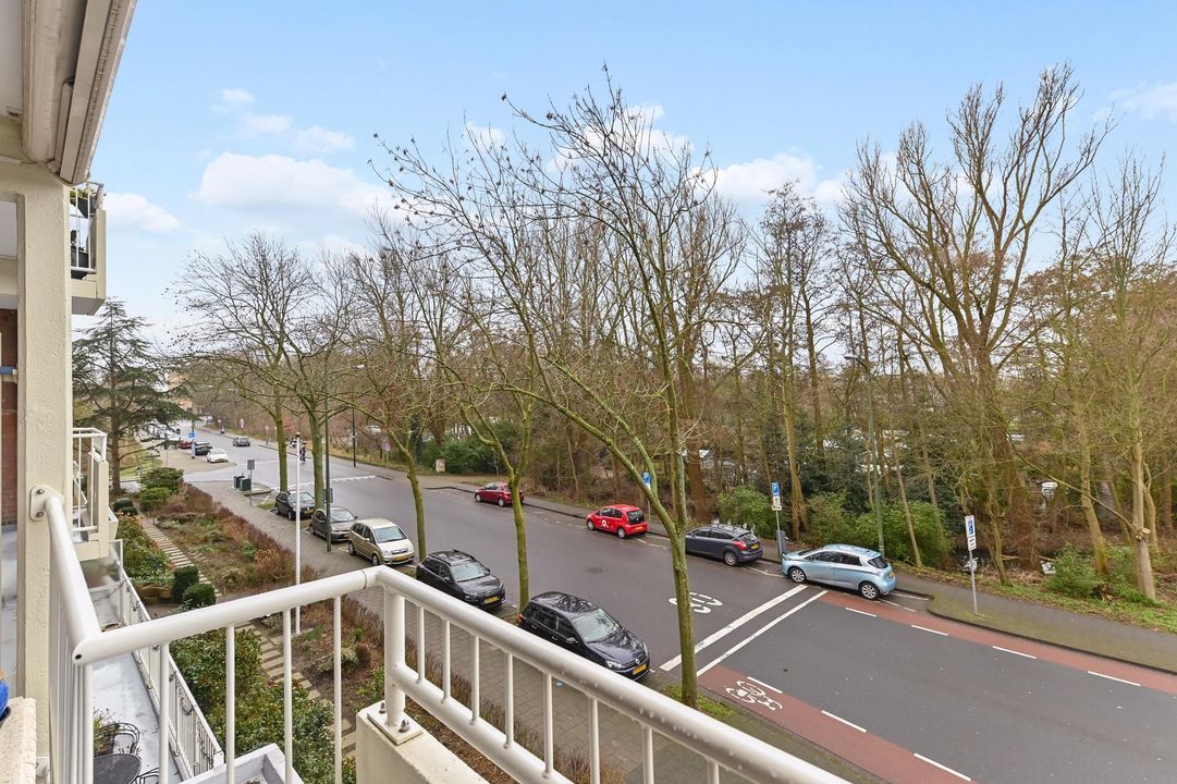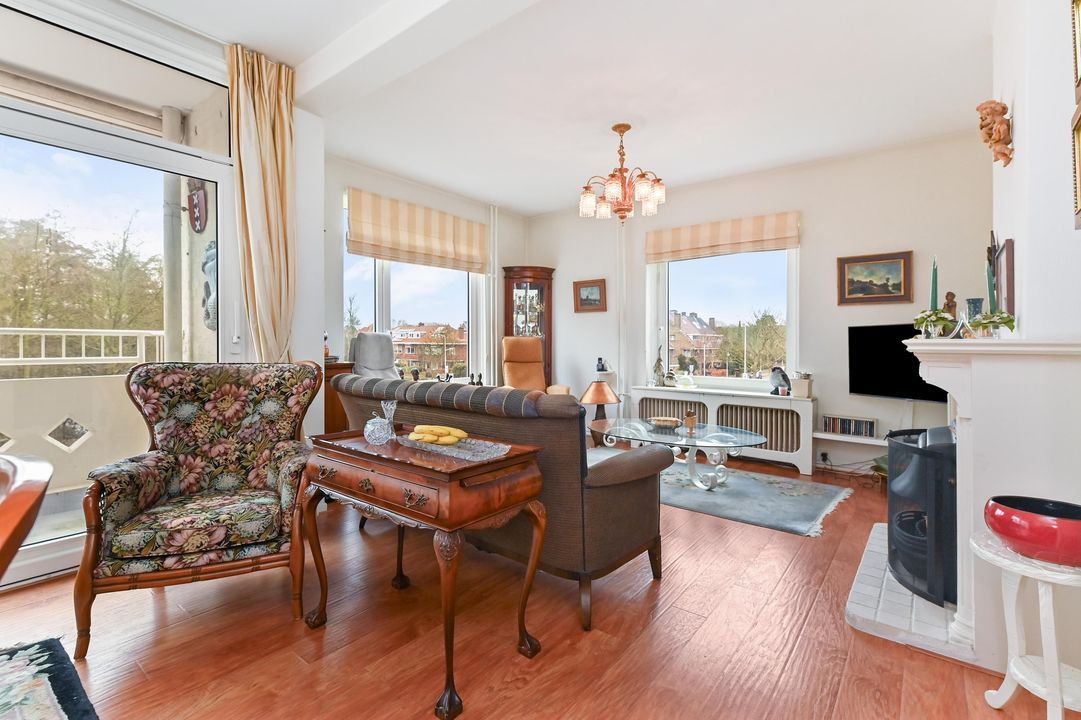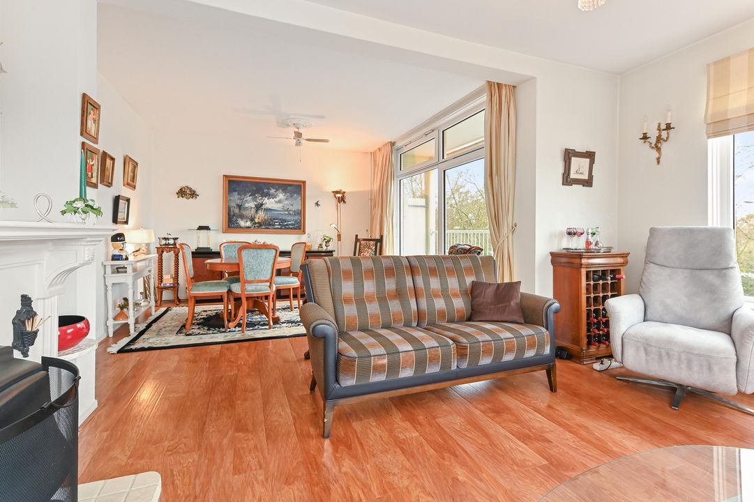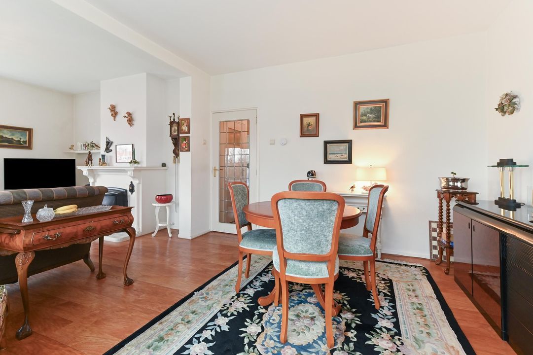 De zeer lichte en gezellige woon-/eetkamer is gelegen aan de voorzijde van het gebouw waardoor fraai uitzicht. Mede vanwege de hoekligging en een groot raam leuk uitzicht over de Wildhoeflaan en een deel van de Vogelwijk. Middels de schuifpui komt u op het ruime zonnige voorbalkon gelegen op het ZW waar u vanaf de ochtend tot de avond kunt genieten van de zon.