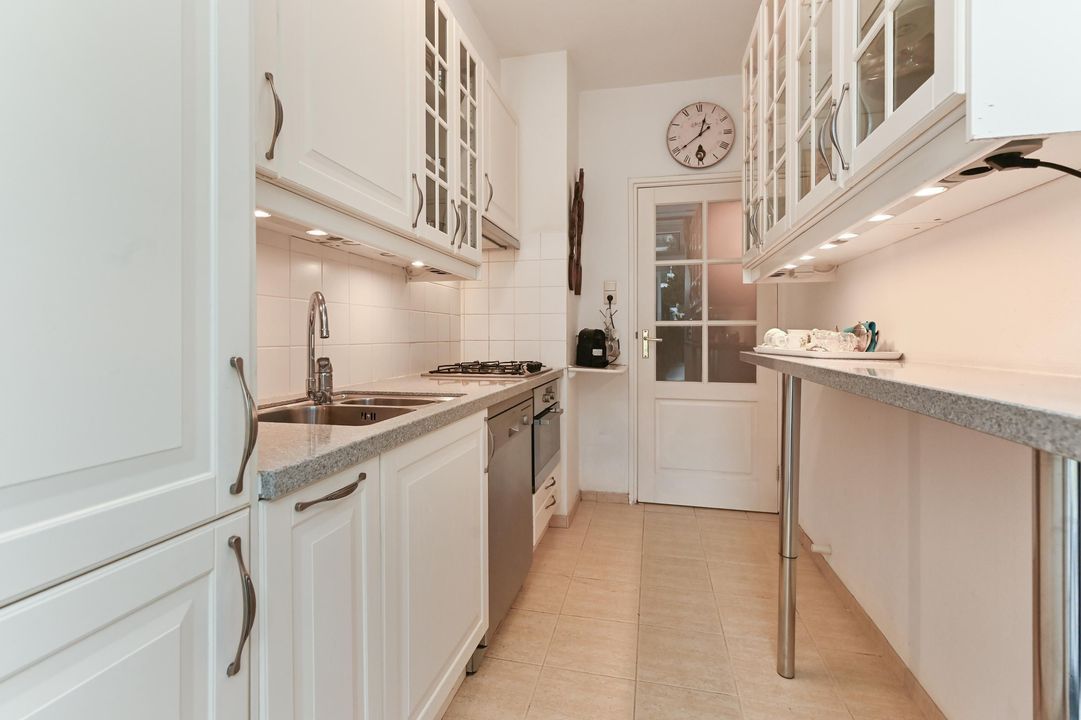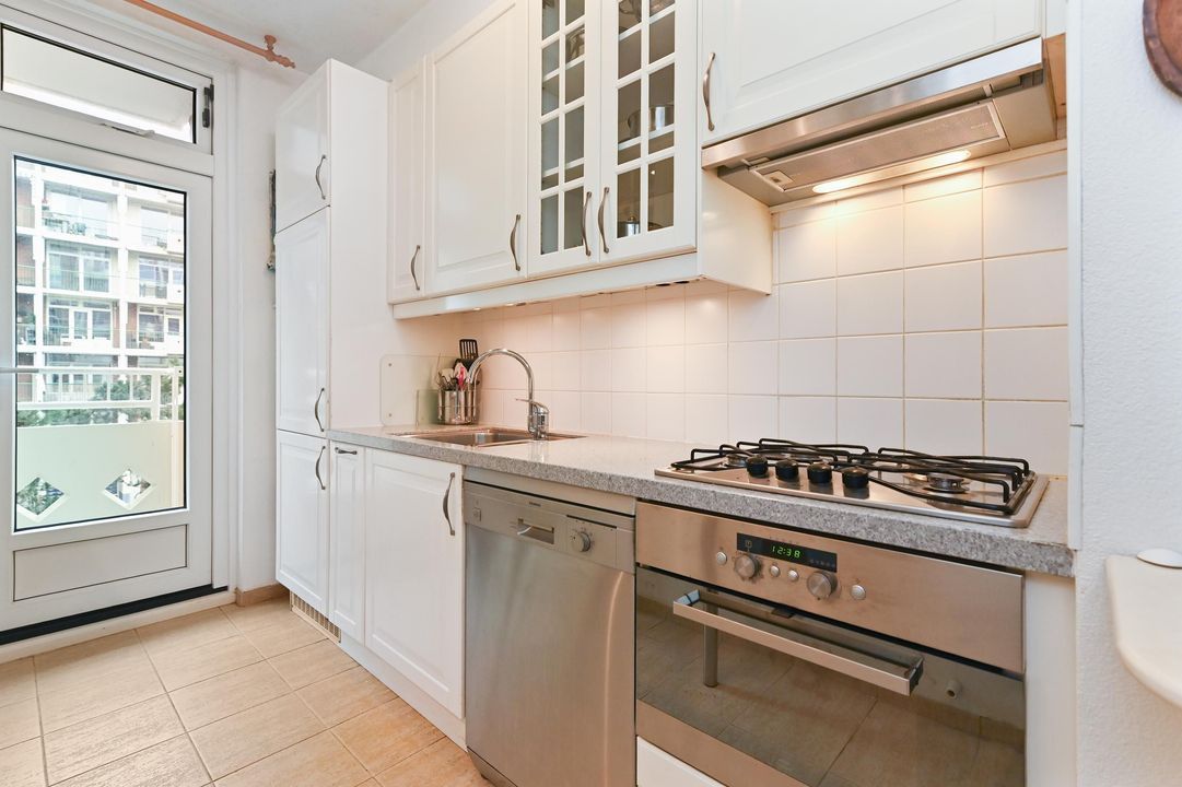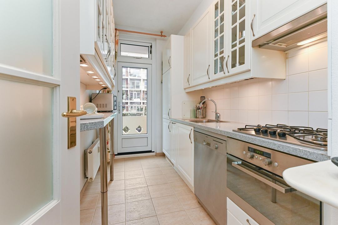 4 pits gaskookplaat, een combi-oven, vaatwasser, afzuigkap, koelkast en vrieskast. Vanuit de keuken kunt u ook het achterbalkon betreden.