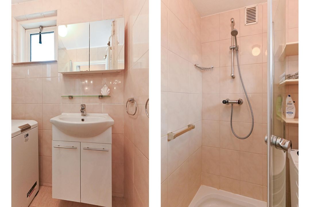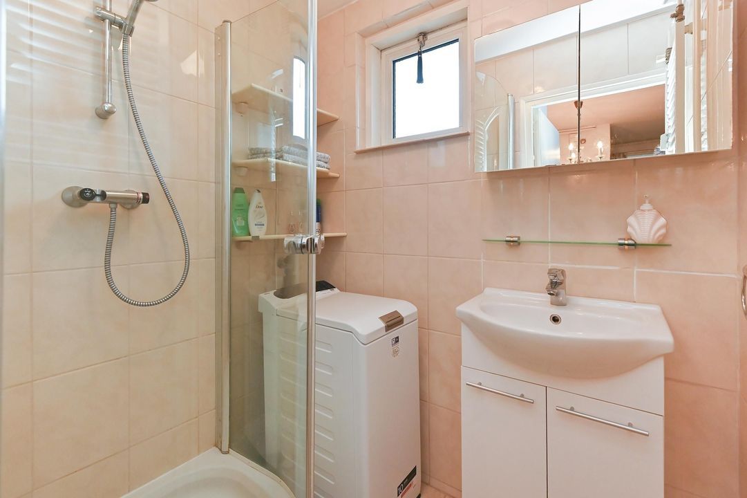 De badkamer is voorzien van een douchecabine, een wastafelmeubel, opstelplaats voor wasmachine alsmede een designradiator voor de handdoeken.
