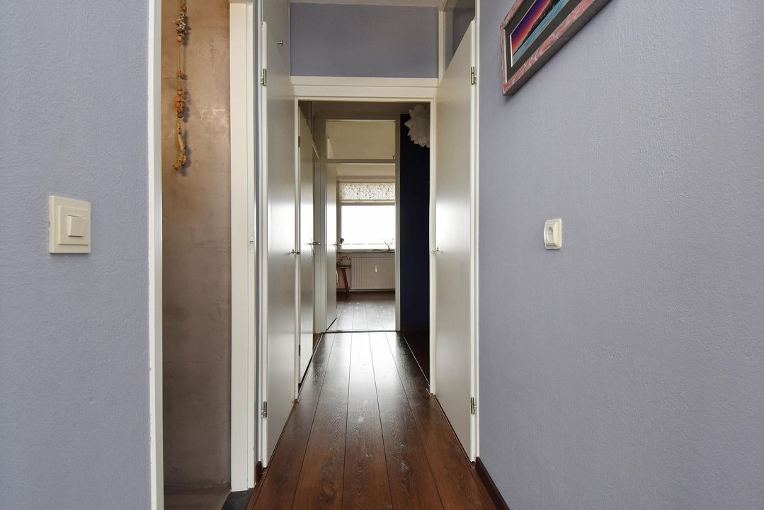 Via een deur in de woonkamer kom je in een gang met toegang tot de overige (slaap) vertrekken van de woning. Zo is er toegang tot een diepe proviandkast, een ondiepere kast en een separaat toilet met hangend closet en fonteintje.