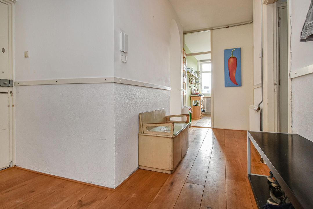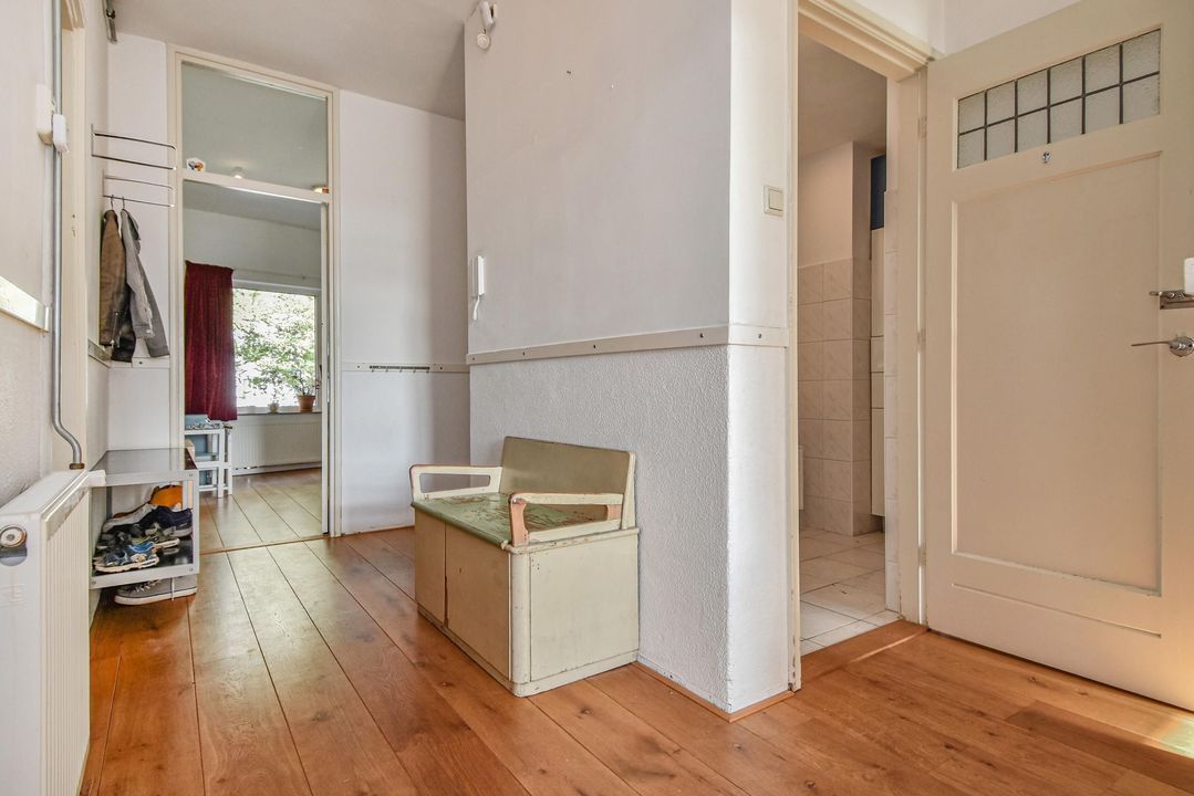 Indeling: gesloten entree met bel- en brievenbustableau en ruim licht trappenhuis naar de hoger gelegen verdiepingen. Op de 2e verdieping (top etage) is de entree van deze woning. Royale hal met een meterkast (5 groepen en aardlekschakelaar), eiken parketvloer, intercom en toegang tot alle vetrekken van de woning.