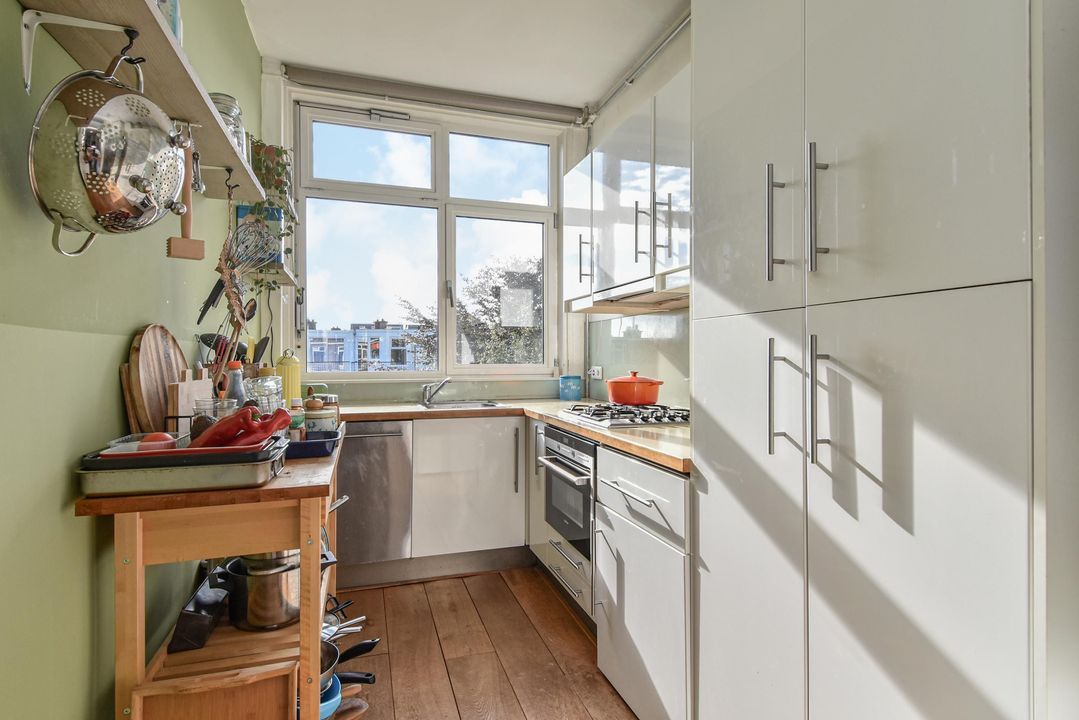 De moderne keuken is in een L-opstelling en voorzien van een 4 pits gaskookplaat, elektrische oven, vlakscherm afzuigkap, vaatwasser, opstelplaats voor de wasmachine en de c.v. combi ketel (Remeha Tzerra 2016).