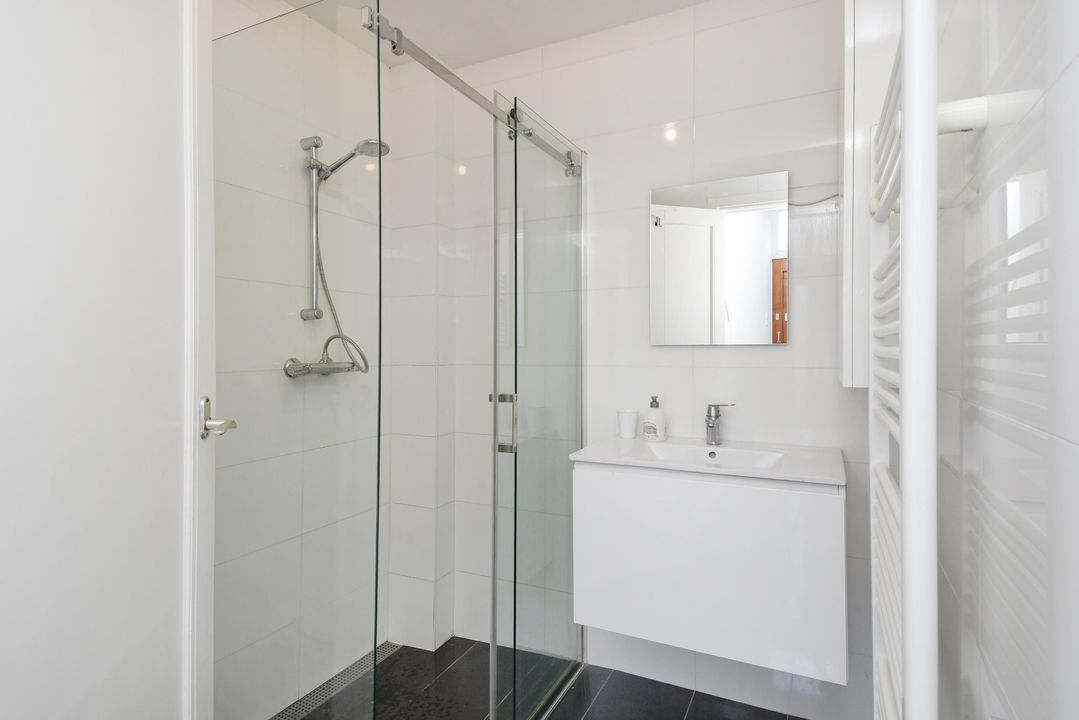 De moderne badkamer op deze verdieping is van ruime maatvoering en voorzien van een douchegelegenheid, wastafelmeubel en wandcloset. Ook is hier een design (handdoek) radiator en vloerverwarming aanwezig.