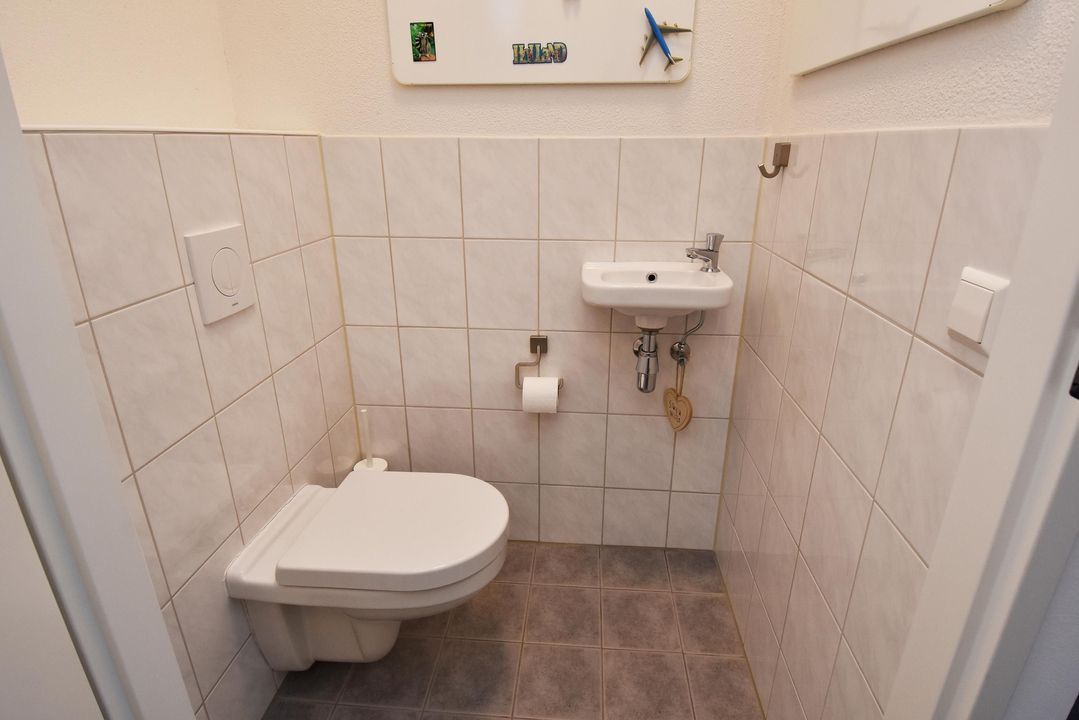 Indeling: entree, hal met meterkast met moderne installatie (7 groepen met 2 aardlekschakelaars en kookstroom), modern toilet met wandcloset en fonteintje.