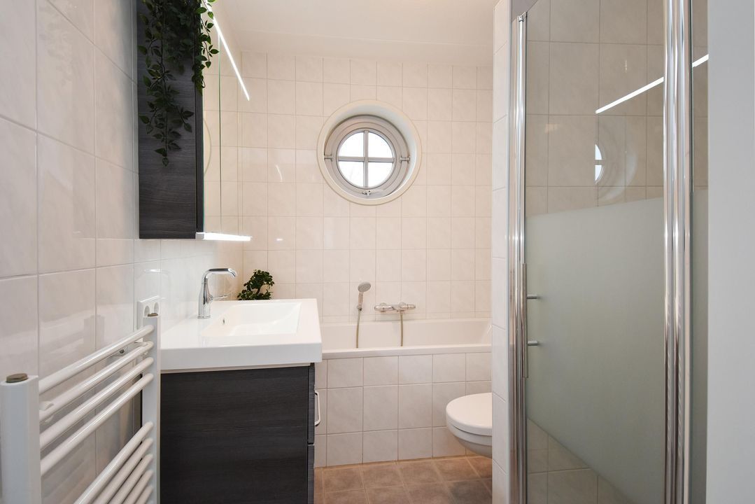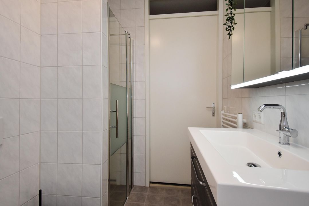 1e verdieping: overloop met laminaatvloer en toegang tot alle vertrekken. De nette en complete badkamer is uitgevoerd met een wastafelmeubel, ligbad, wandcloset, handdoekradiator en douche. De voorslaapkamer is uitgevoerd met laminaatvloer en heeft vrij zicht over de waterpartij en het groen aan de overzijde van deze gezellige straat. Aan de achterzijde zijn 2 slaapkamers gelegen, beiden voorzien van een laminaatvloer en met zicht over de tuinen.