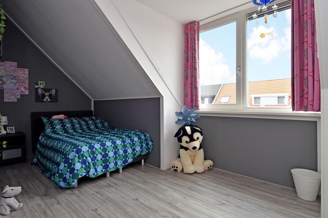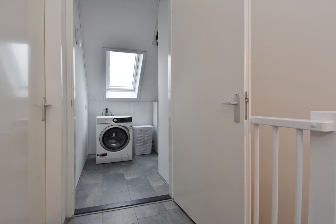 2e verdieping: ruime overloop met laminaatvloer, een ruime zolderkamer gelegen aan de achterzijde en uitgevoerd met kleine dakkapel. De ruime voorslaapkamer heeft een groot dakraam met prettige lichtinval. Op deze verdieping is tevens de “technische ruimte” met opstelplaats voor de mechanische ventilatie, de wasmachine en droger.