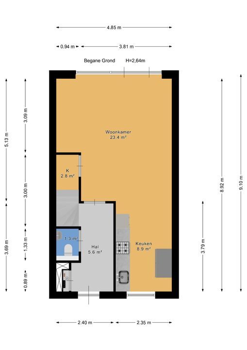 - Kijk voor exacte maatvoering naar de meetstaat (NEN2580) en plattegrond.