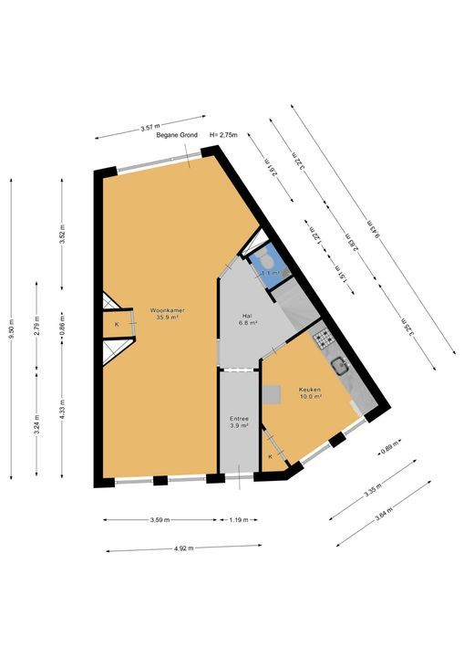 - Voor de exacte maatvoering (NEN 2580) verwijzen wij u naar de officiële meetstaat en plattegrond