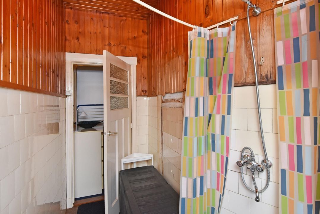 Deze ruimte is thans eenvoudig ingericht met een douche.