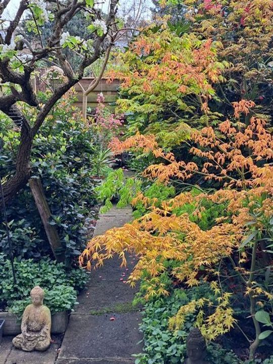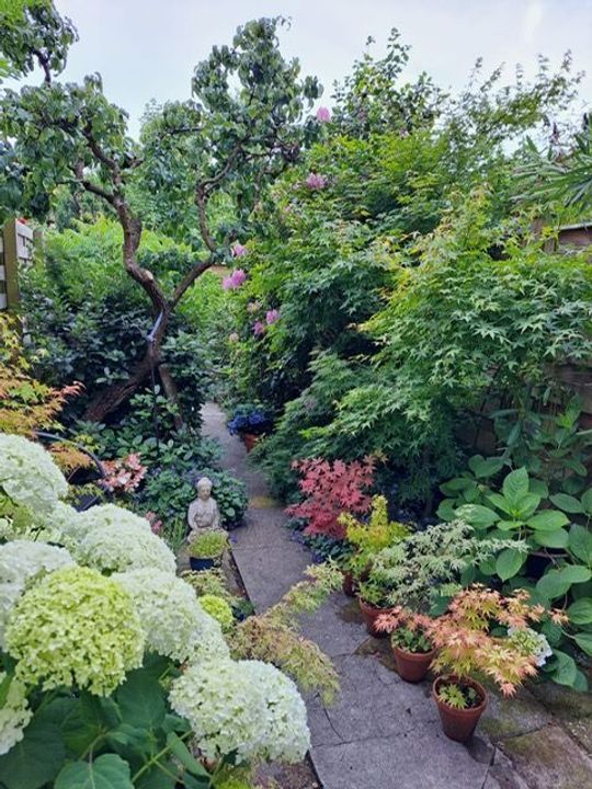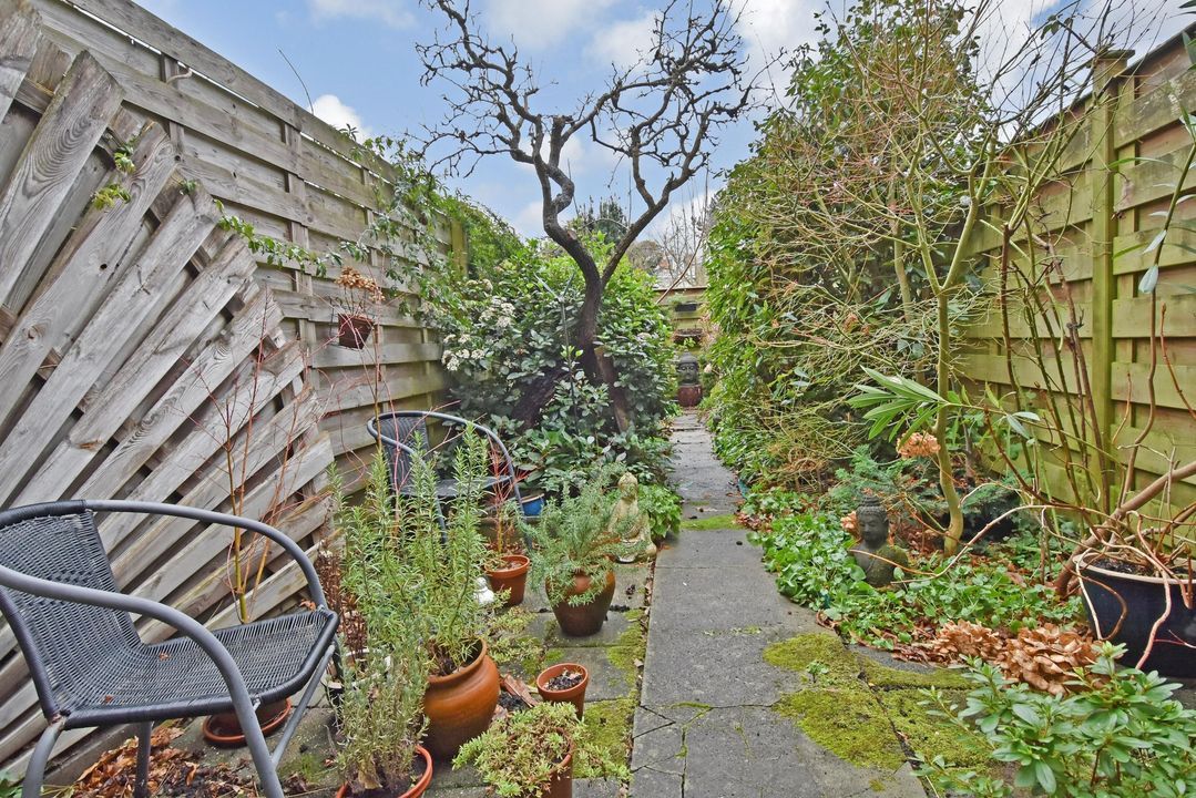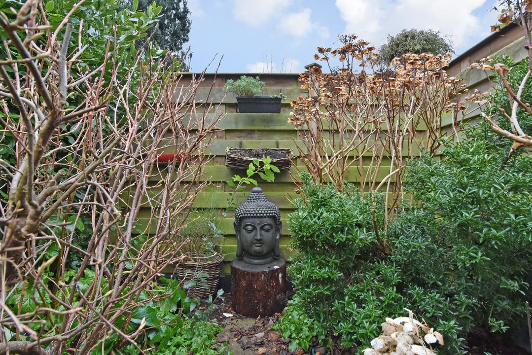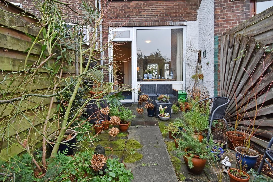 De achtertuin welke via de woonkamer te betreden is, is zeer gezellig aangelegd en goed op de zon gelegen. (Z.W). Dat het hier prettig wonen is blijkt uit het feit dat de woning al meer dan 60 jaar binnen de familie in bezit is.