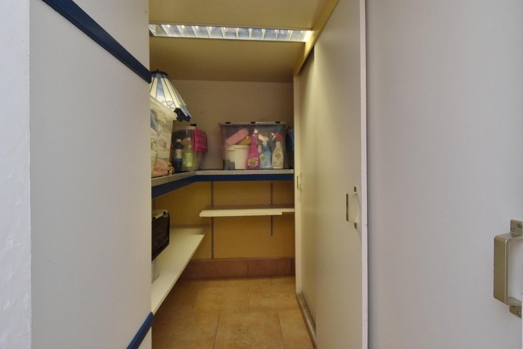 Vanuit de keuken is er een doorloop naar de zogenaamde “bijkeuken". Ideaal voor extra voorraadopslag en van daar uit toegang tot de aangebouwde berging voorzien van elektra en verwarming, opstelplaats voor de c.v. combi ketel (Intergas 2019) en wasmachine en/of droger.