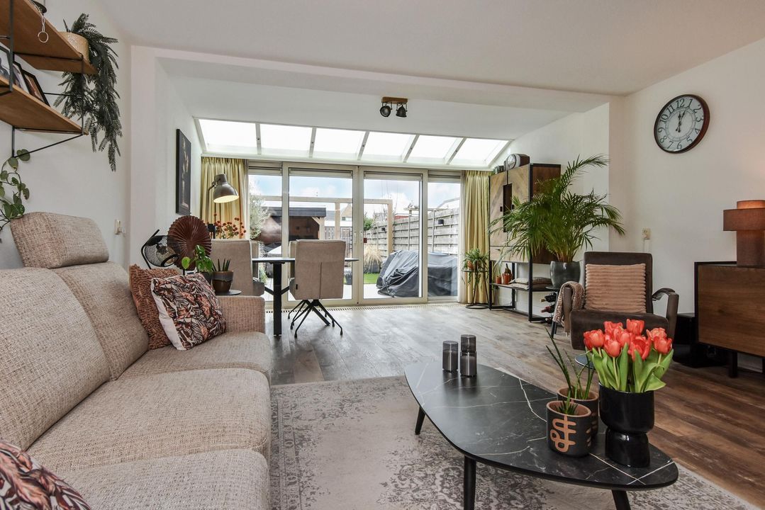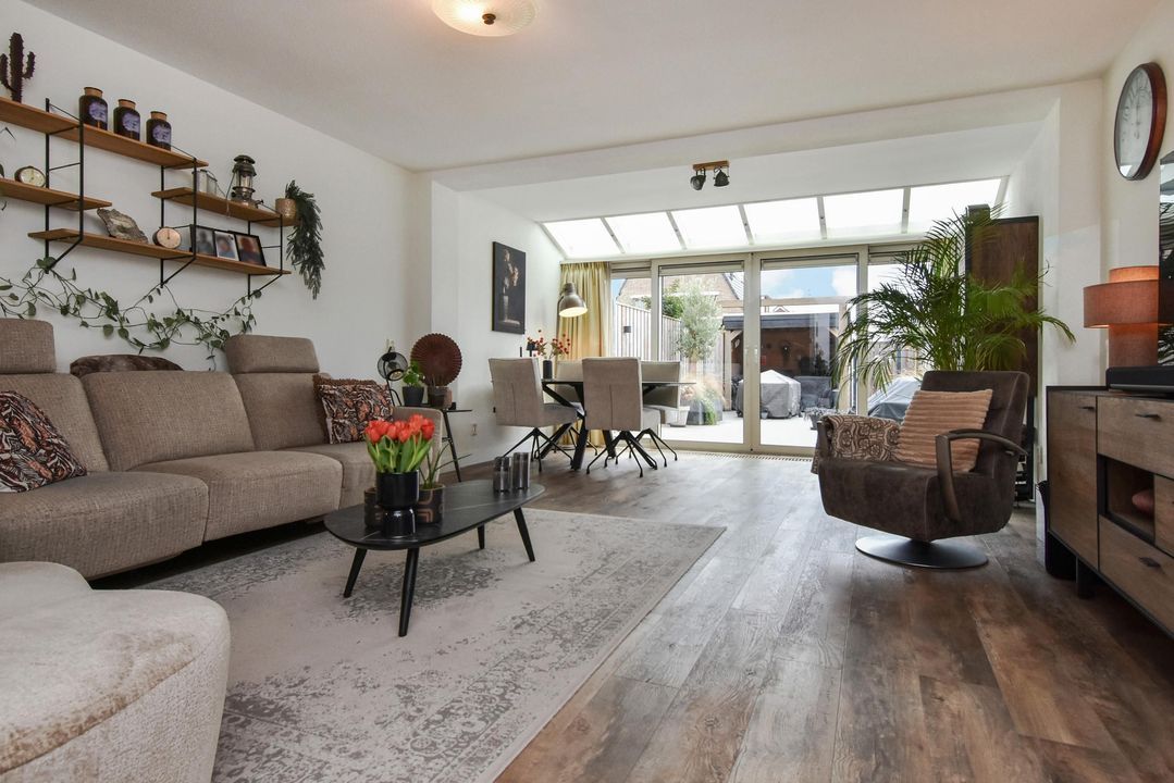 De gezellige tuingerichte woon-/eetkamer is voorzien van een fraaie pvc vloer in een warme kleurstelling. In 2006 is deze woonkamer uitgebouwd waardoor een extra ruime woonkamer is ontstaan. Aan de achterzijde bevindt zich een convectorput en een dubbele schuifpui naar de recent fraai aangelegde achtertuin op het Zuidwesten waardoor u de gehele dag van de zon kunt genieten. Er is zonwering aanwezig alsmede een nieuwe Nova Zipscreen met motor. Door de gehele woning zijn horren aanwezig zodat u met een gerust hart de ramen en tuindeuren open kunt laten staan zonder last te hebben van vliegen of muggen.