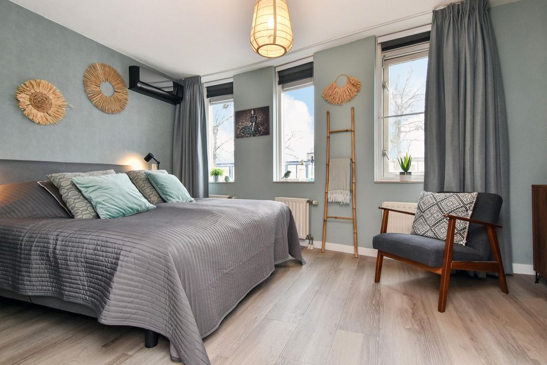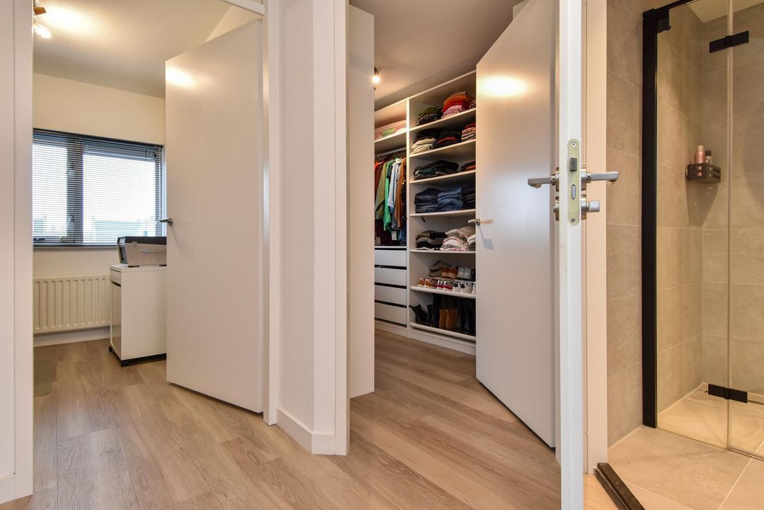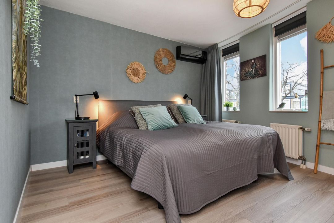 Aan de voorzijde van de woning ligt de ruime ouderslaapkamer voorzien van een airco en met uitzicht over de straat en aan de achterzijde van de woning liggen nog 2 royale slaapkamers met leuk uitzicht over de tuinen. De gehele verdieping is voorzien van een fraai pvc vloer in een warme kleurstelling.