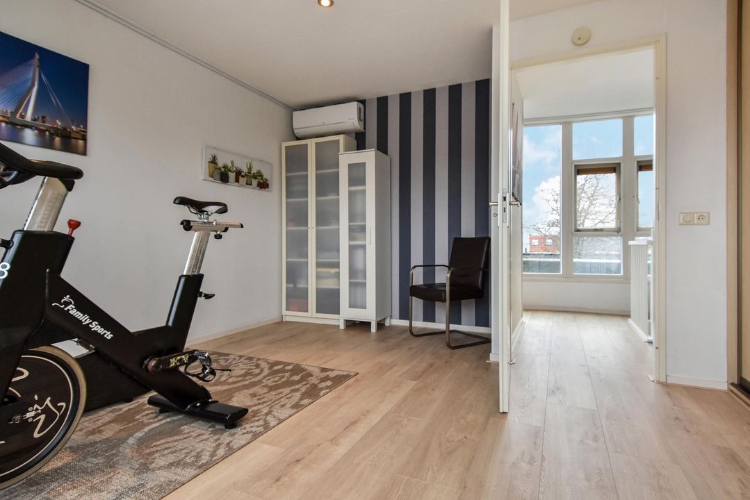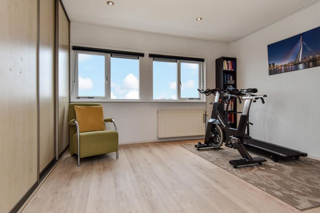 Aan de achterzijde bevindt zich de 4e ruime slaapkamer voorzien van een airco. De gehele bovenverdieping is voorzien van een fraaie en moderne laminaatvloer.