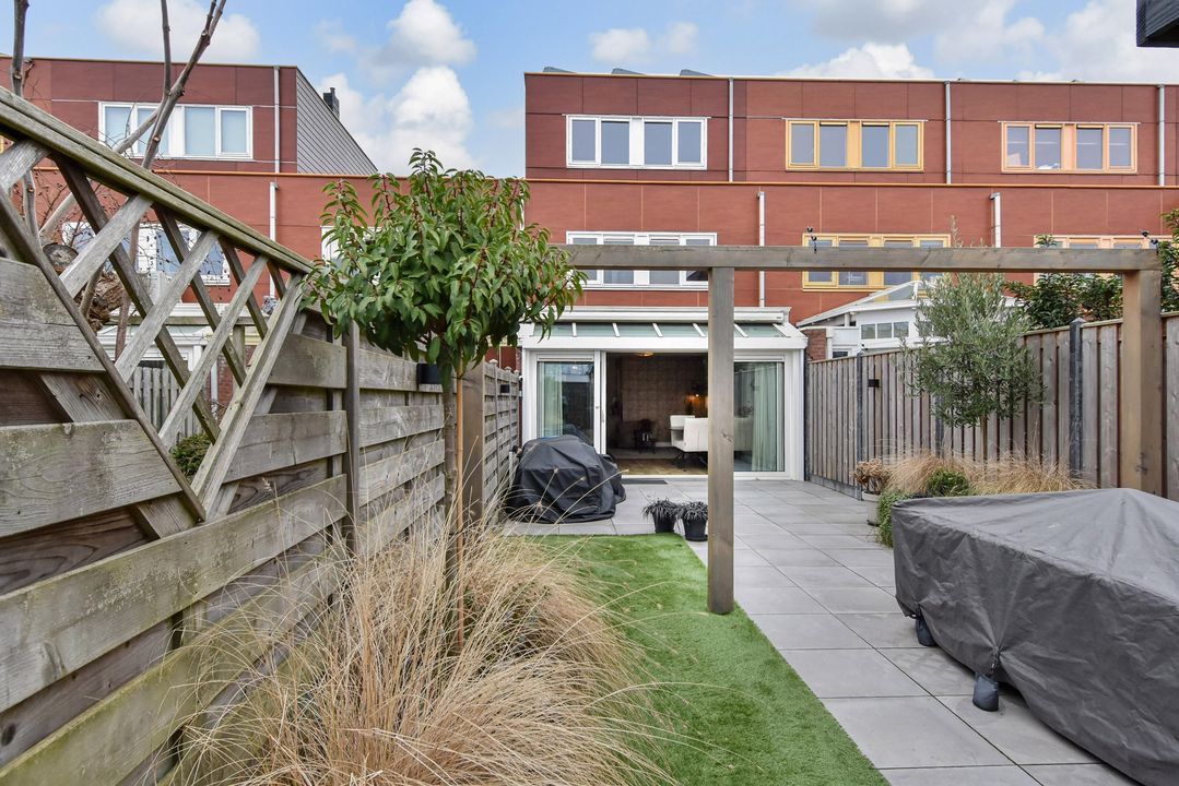 Deze fijne 3-laags eengezinswoning is van alle gemakken voorzien zoals een uitgebouwde woon-/eetkamer, luxe open keuken, 4 slaapkamers, nieuwe badkamer, een zonnige achtertuin op het Zuidwesten van ca. 14 meter alsmede 8 zonnepanelen.