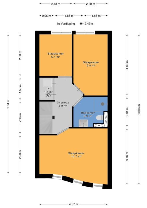 - Kijk voor de exacte maatvoering (NEN 2580) naar de officiële meetstaat en plattegrond